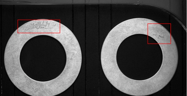 初期采用普通环形光源进行顶部照明,出现以下问题: