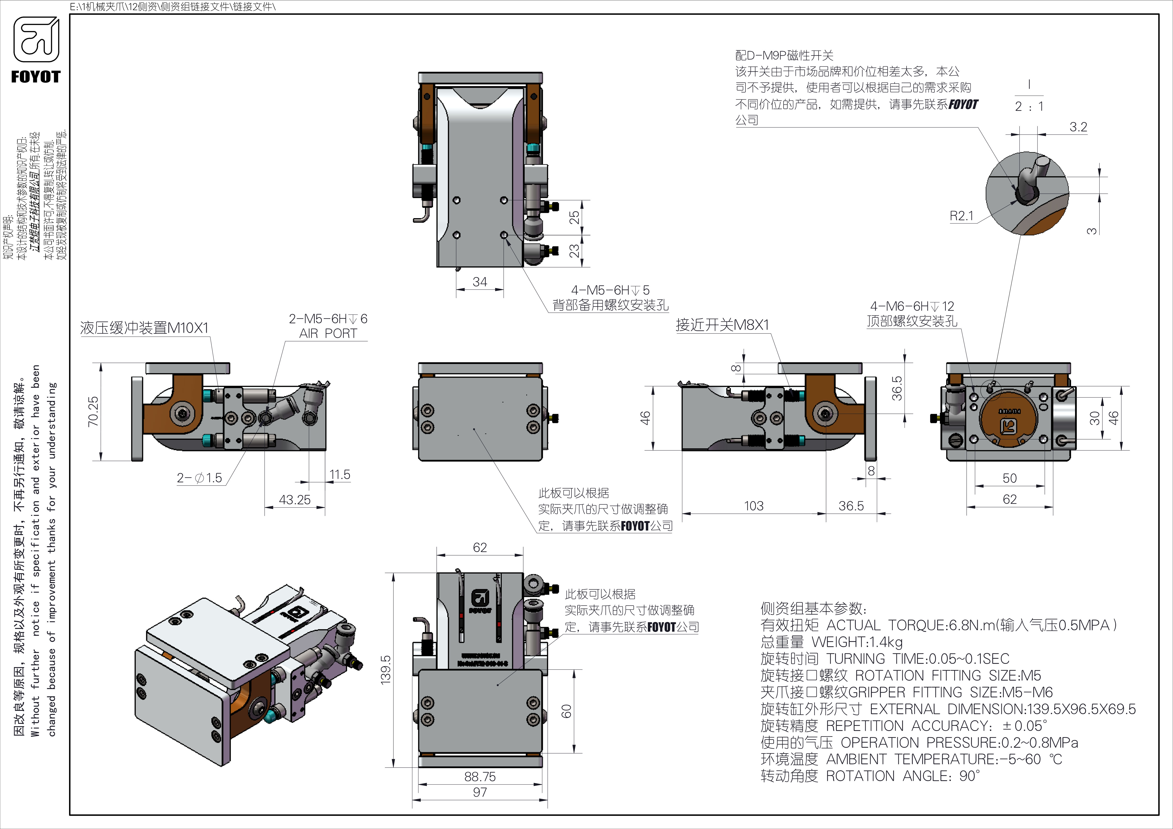 旋转缸外形尺寸EXTERNAL DIMENSION:139.5X96.5X69.5