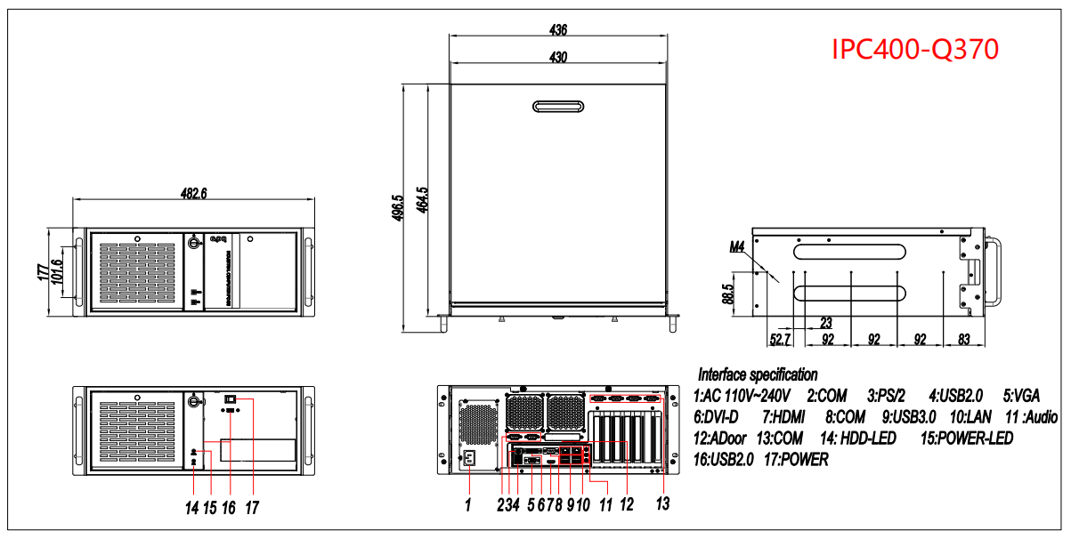 | 尺寸 | 482.6 * 177 * 464.5mm(不含把手) | |