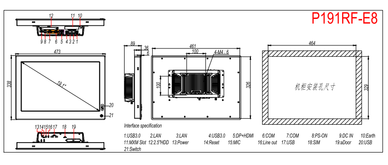| LCD参数 | 显示类型 | 19” WXGA+ Color TFT-LCD |