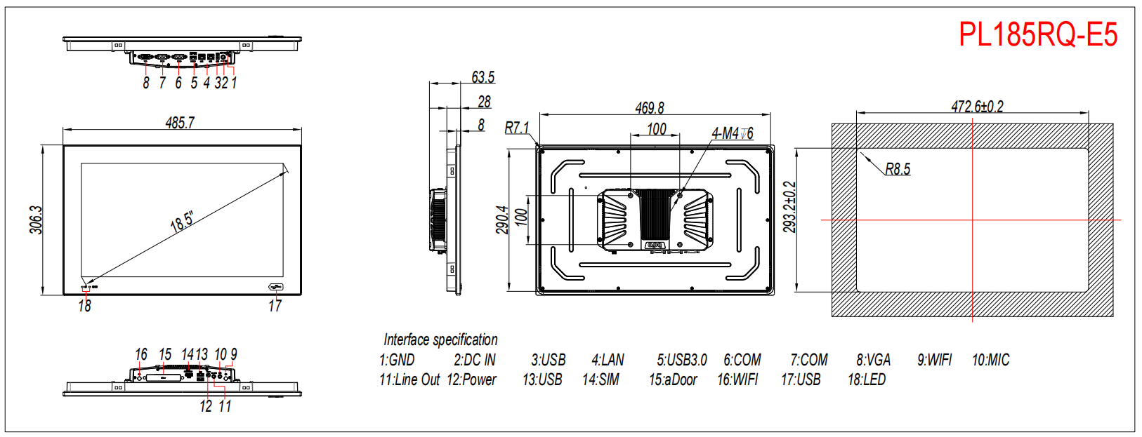 | LCD参数 | 显示类型 | 18.5”(XGA)a-Si TFT-LCD |
